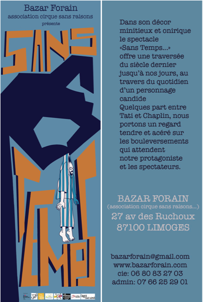 Dans son décor minutieux et onirique, le spectacle “Sans Temps…” offre une traversée du siècle dernier jusqu’à nos jours, au travers du quotidien d’un personnage candide.